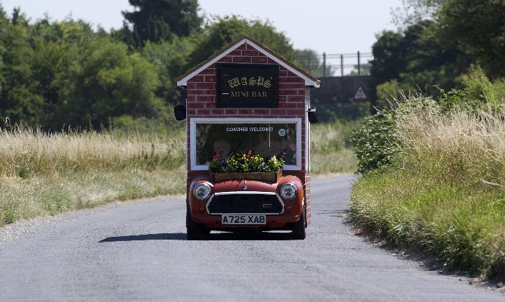 National press and TV. The only mobile Mini-Pub in the world and also the smallest. Featuring 'Wicked Wasp' ale and it never closes!