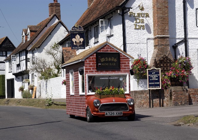 (Click pictures to enlarge) National press and TV. The only mobile Mini-Pub in the world and also the smallest. Featuring 'Wicked Wasp' ale and it never closes!